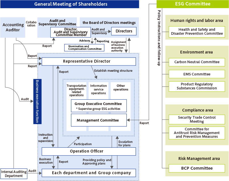Important matters related to ESG are deliberated at the ESG committee, a company-wide meeting body related to ESG, and reported to the Management Meeting.