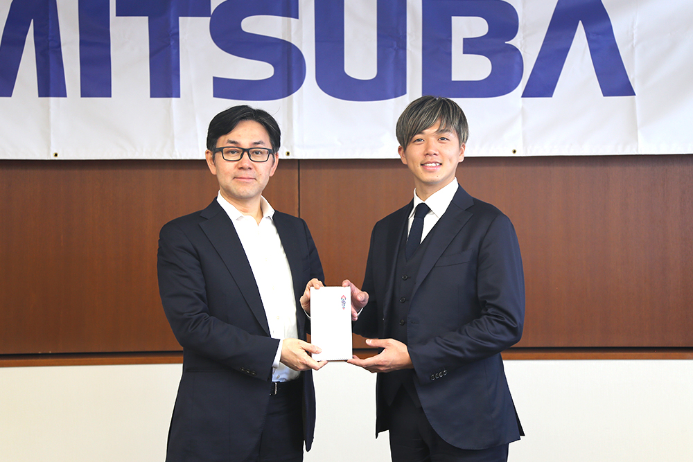 12月22日、今シーズンの結果報告のために、当社がスポンサー契約を締結している群馬県桐生市出身のモーターサイクル・ロードレースライダー水野涼選手(DUCATI Team KAGAYAMA)の表敬訪問がありました。
